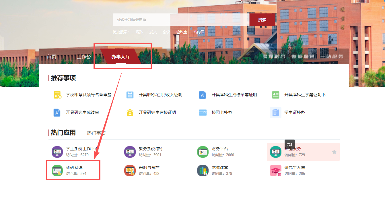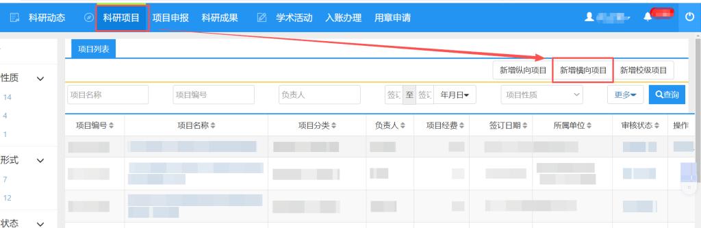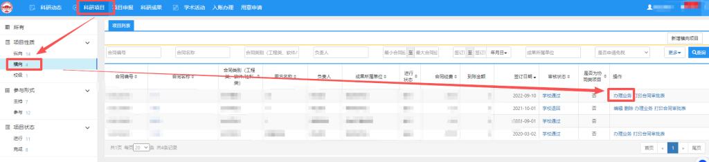 2.2 校内登记:通过信息门户登录科研系统,通过新增横向完成合同登记备案。